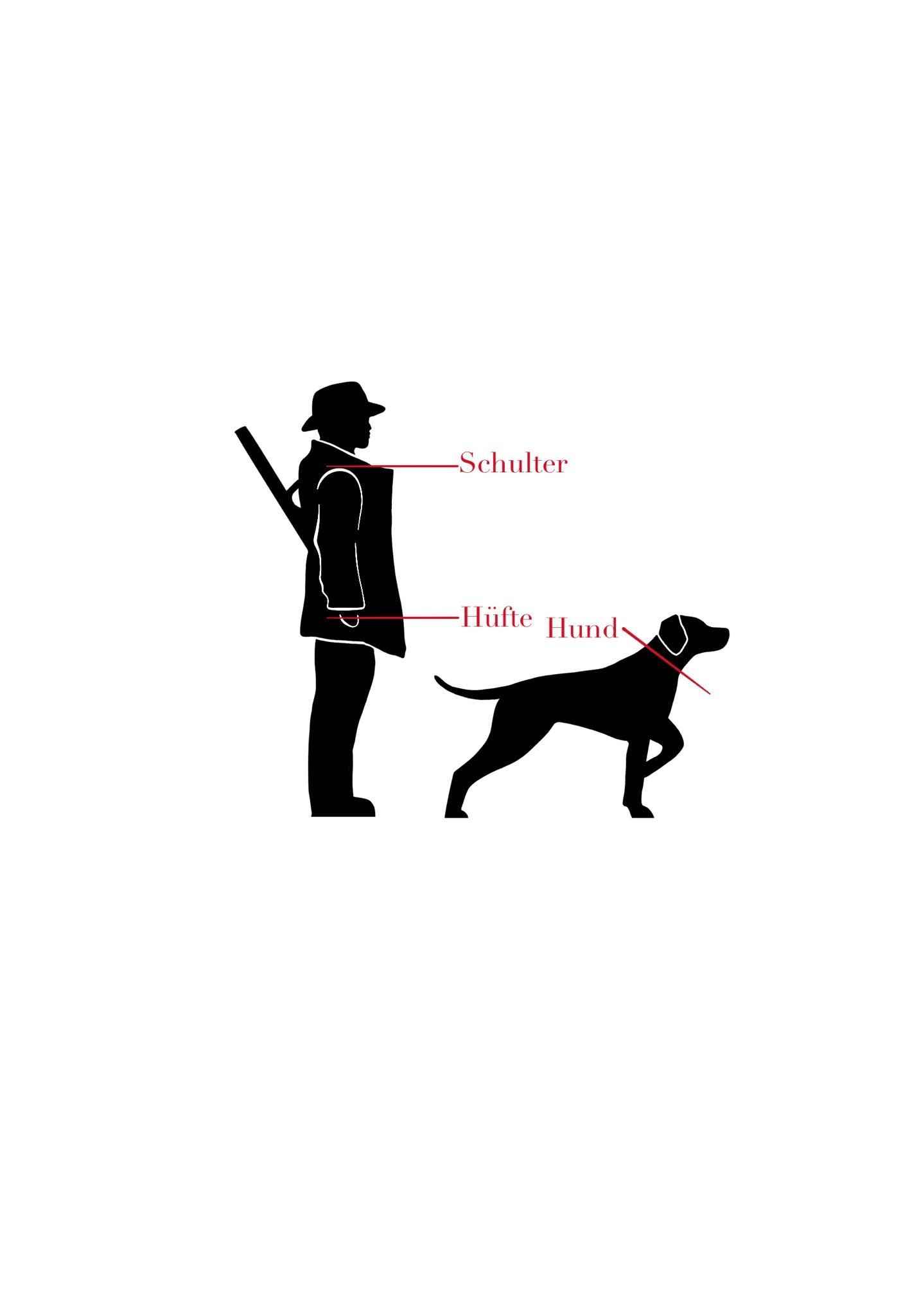 Damit Eure Leine die richtigen Maße hat, messt bitte von Eurer Schulter bis zur Hüfte und von dieser anschließend zu Eurem Hund. Unsere Grafik kann Euch hierbei eine Hilfe sein.