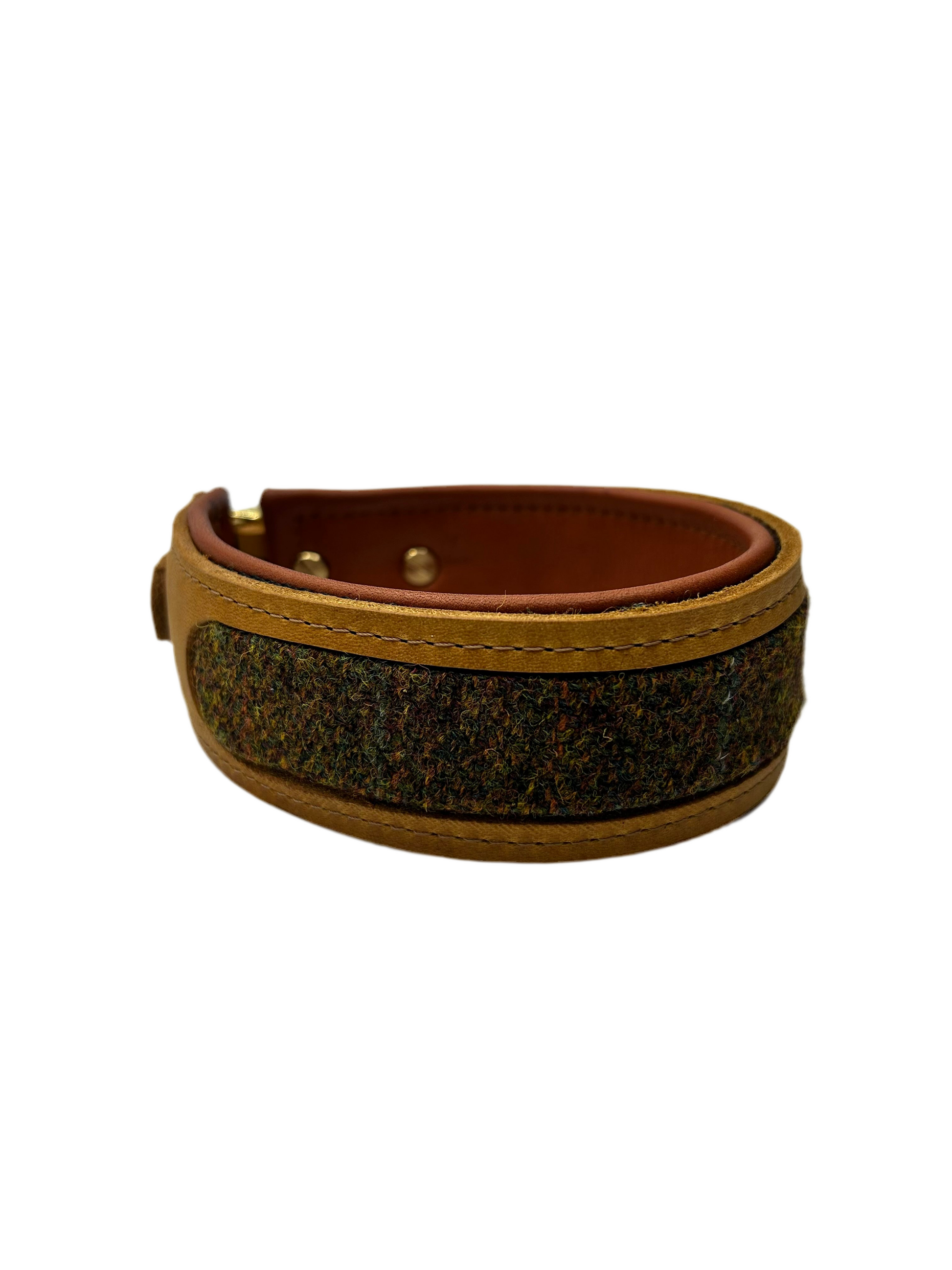 Halsband „Herbstzauber" - Fettleder trifft Harris Tweed