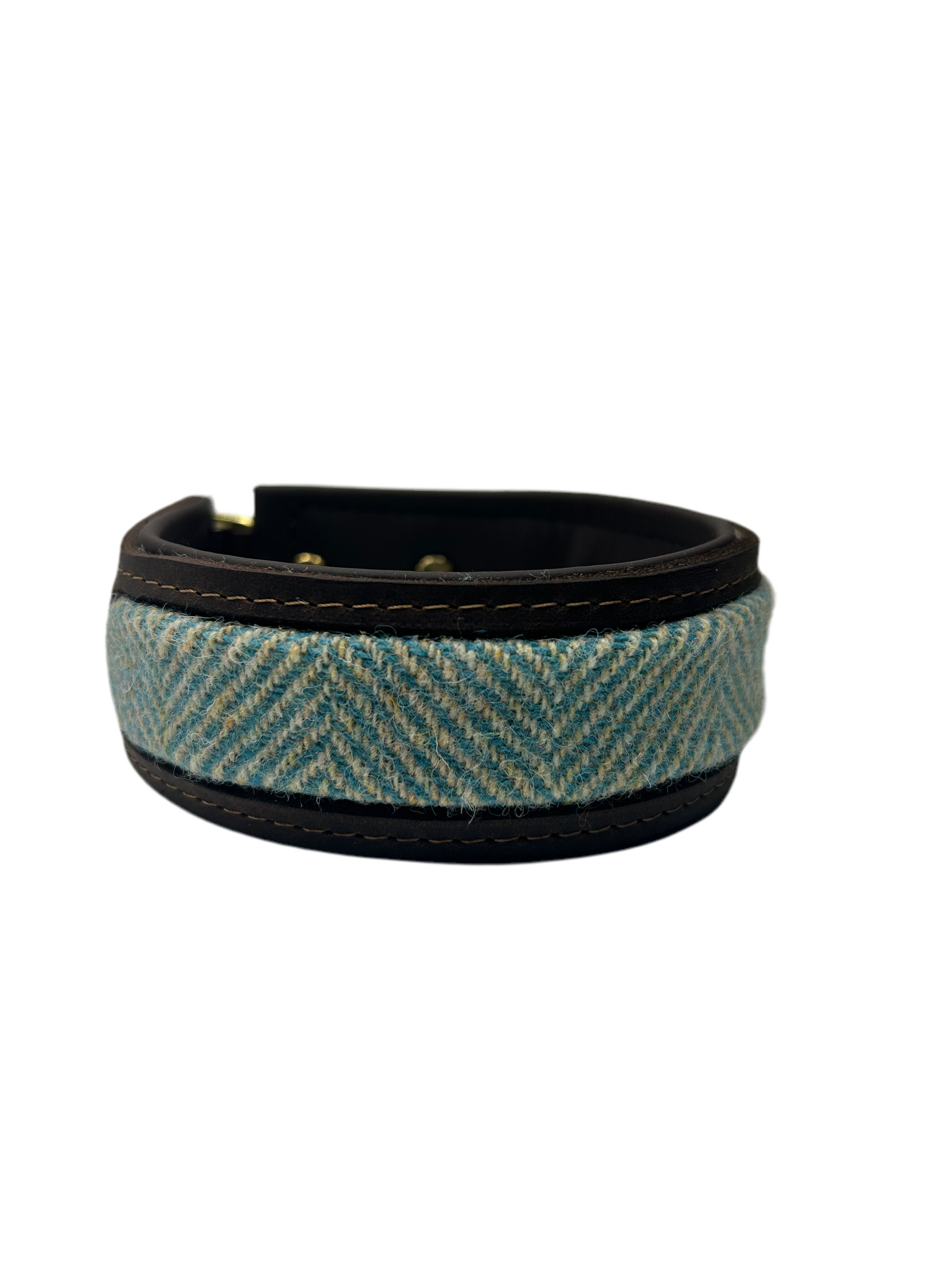 Ein kleines Stück Herbst zum Anlegen: Unser neues Halsband vereint butterweiches, hochwertiges Fettleder mit dem edlen Inlay aus original Harris Tweed - handgewebt aus 100% Schurwolle auf den Hebrideninseln Schottlands. Jeder Faden trägt Geschichte, Wärme und ein Stück Natur in sich.